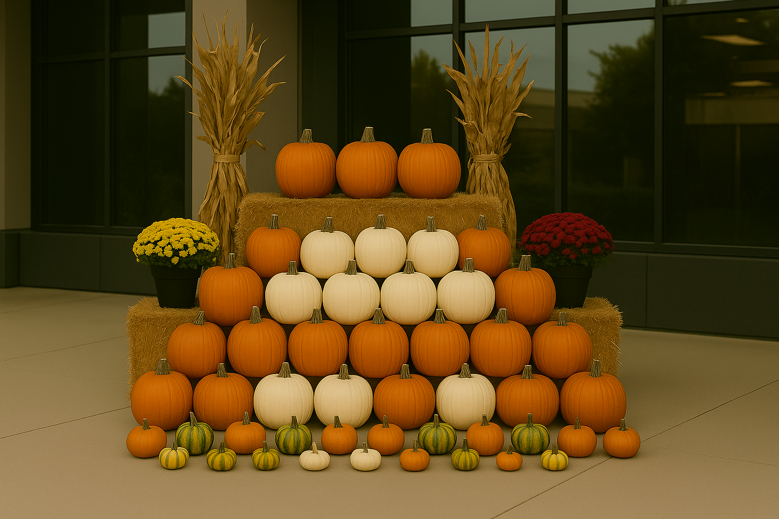 Our most elaborate display, this package is built for impact. Designed to Frame multiple entrances or large pathways, it combines fall's finest colors and textures with lighting for all-day and all-night visual appeal. This package includes delivery and professional styling setup.
